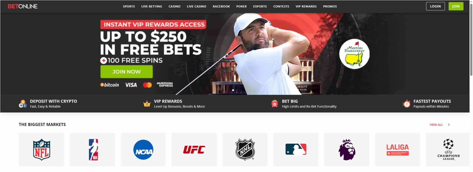 Use promo code FREE250 in the cashier when you make your first ever deposit at BetOnline.
